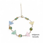 美しいちょうちょのデザインが特徴のこのブレスレットは、ガラスビーズを使用しており、華やかさと優雅さを兼ね備えています。透明感のあるビーズが、手元で光を受けてキラキラと輝き、日常のコーディネートに特別な彩りを添えるでしょう。気軽なお出かけや、特別なイベントにもぴったりです。